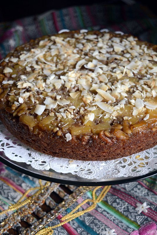 Pineapple Tidbit Brown Sugar Walnut Upside Down Cake