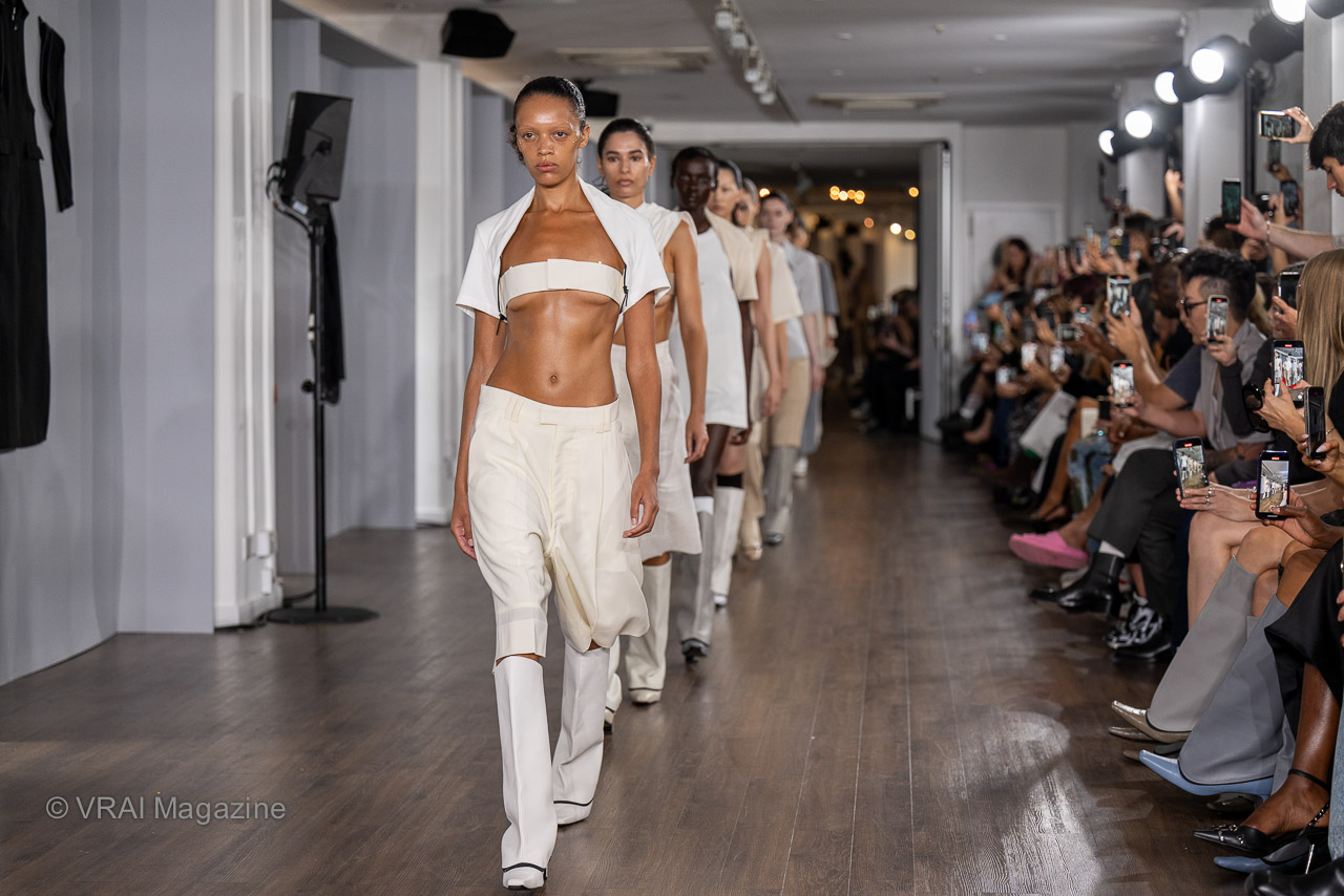 Photos by Graham Land / VRAI Magazine Discover the Je Cai Spring/Summer 2024 collection unveiled on the catwalks of London Fashion Week in September 2023. The latest collection was created in a pale, soothing color palette of white, cream and gray with streamlined silhouettes, banded design, tailored details and touches of workwear reinterpreted with a modern, forward-vision.