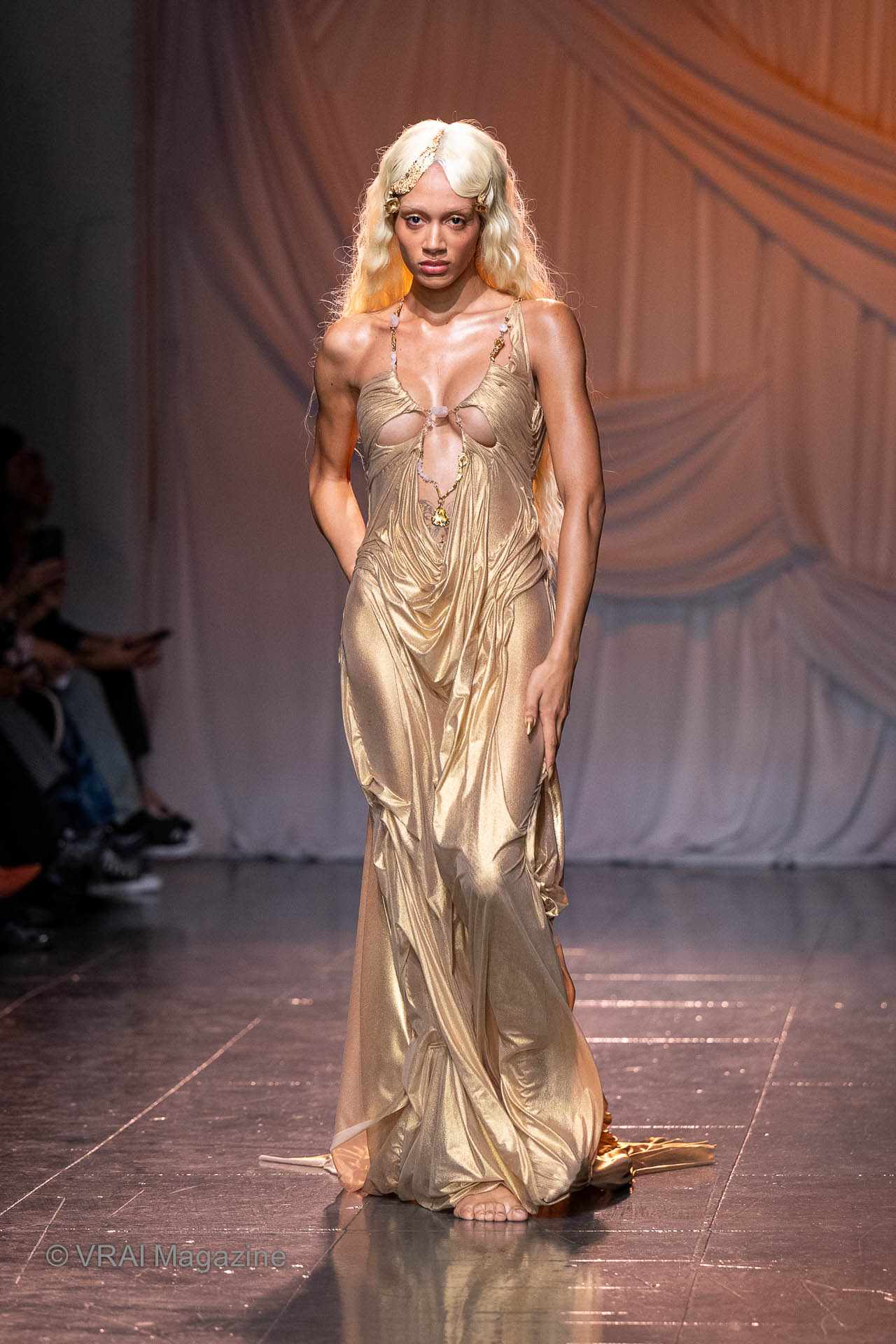 Photos by Graham Land / VRAI Magazine Discover the Di Petsa Spring/Summer 2024 collection unveiled at the NEWGEN catwalk space on day one of London Fashion Week. Grecian-inspired looks appeared to be made with melted precious metals dripping onto the body, tattered wool fabrics evoked rawness, and rope and netting details which bound as well as accentuated...