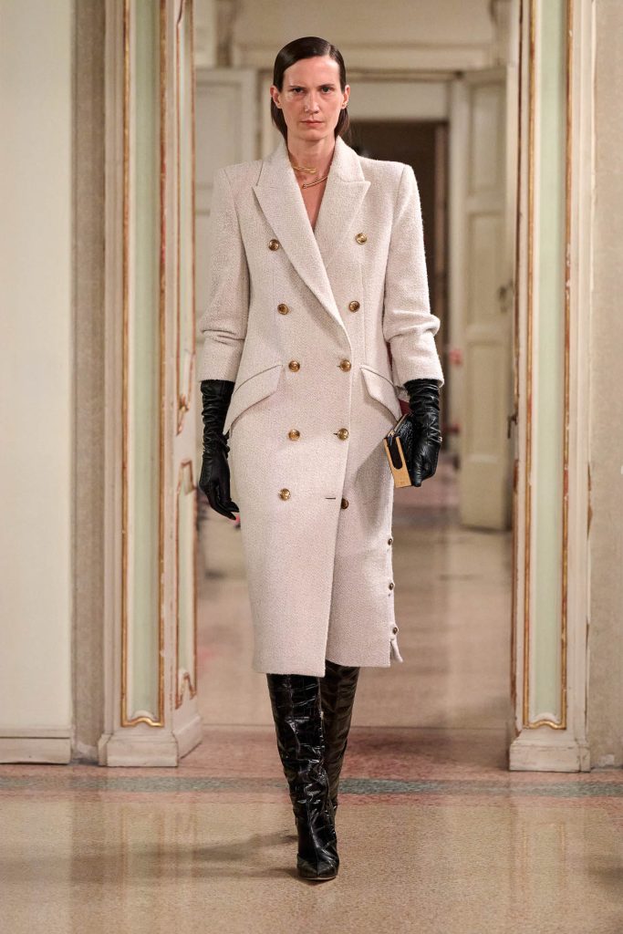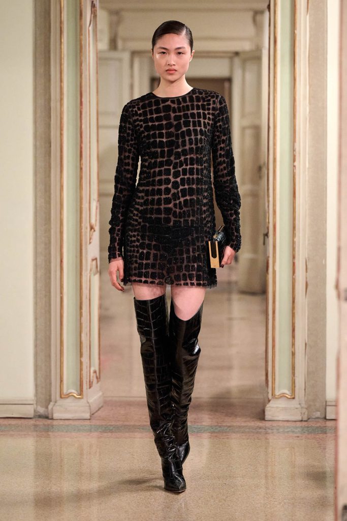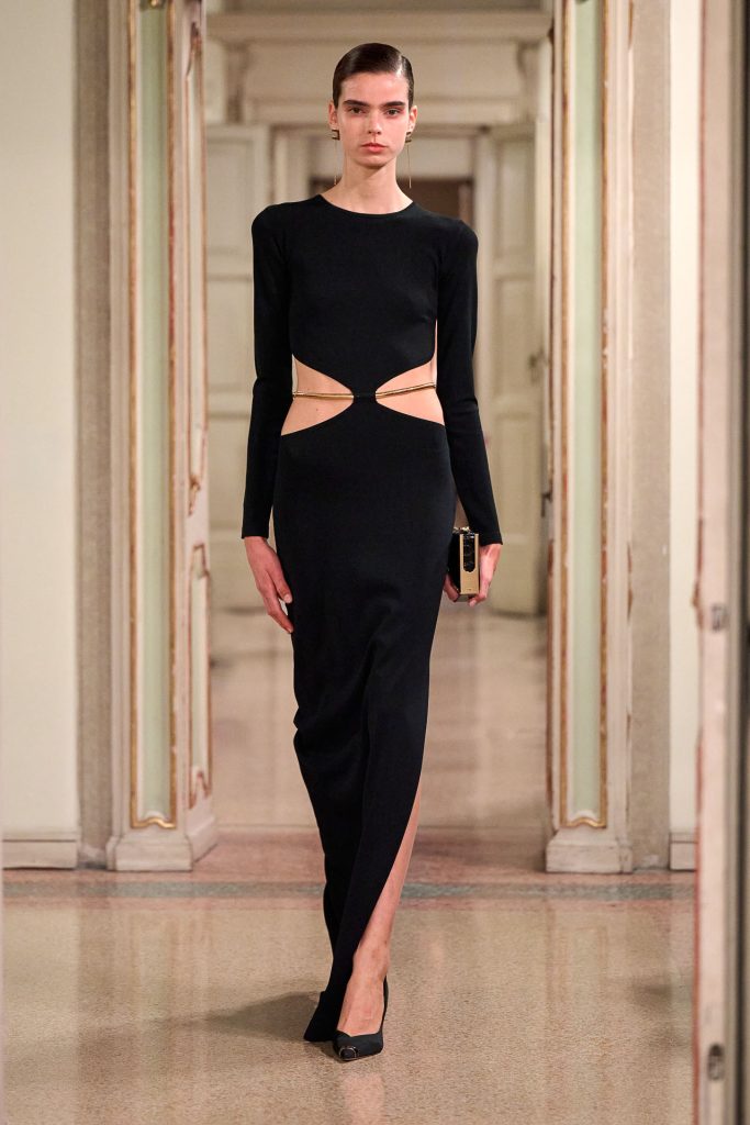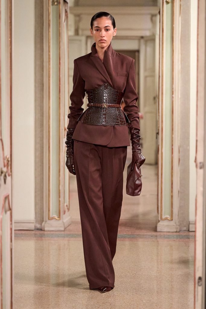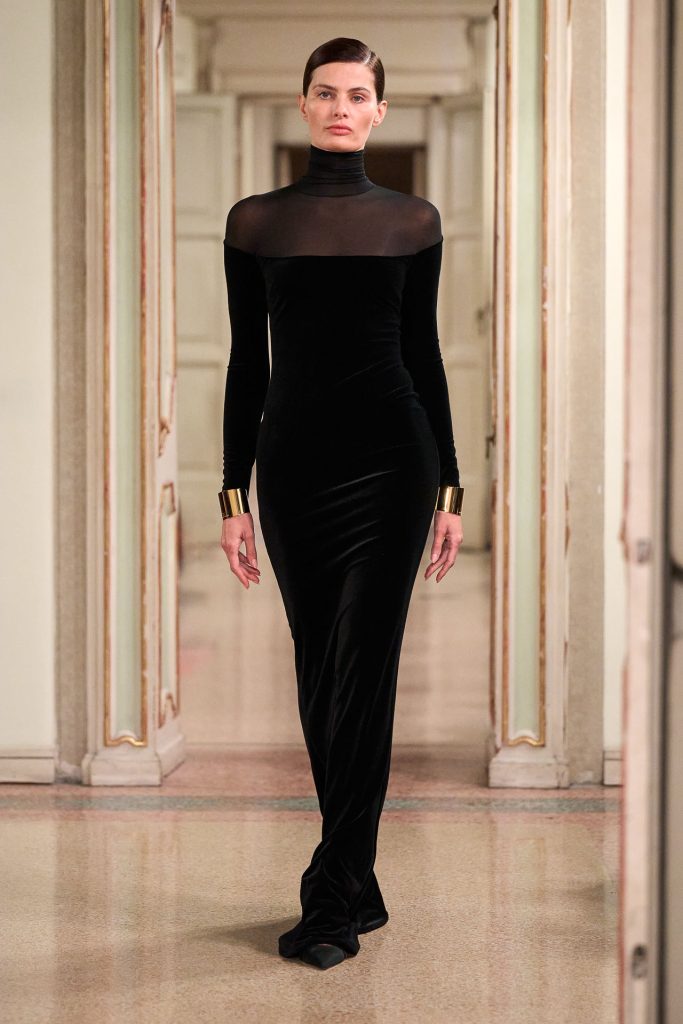 “This collection is a tribute to the strength and freedom of women who are unafraid to express themselves, who embrace their sensuality with confidence and determination. I chose Palazzo Acerbi as the venue for this show — a place that speaks of opulence and audacity. Through its rooms, I wanted to bring to life a femininity that is both elegant and disciplined, assertive yet provocative. Every piece tells the story of a woman who challenges conventions with grace, never compromising her own power.” — Elisabetta Franchi.