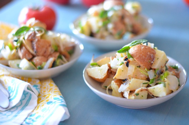 Grilled Potato Salad with Shallots, Fresh Basil and Lemon