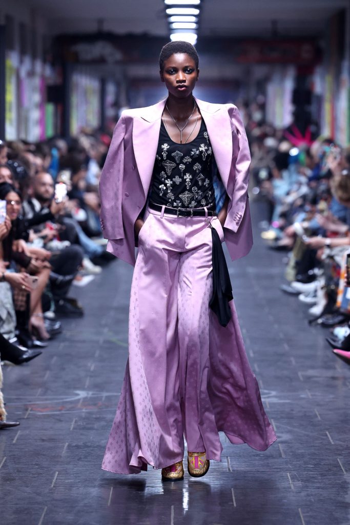 Created in a color palette grounded in black with pops of fuchsia, pink and red, cobalt blue and earthy neutrals, the collection mixes underground edginess while exuding modern luxury through refined tailoring and distinctive accessories.