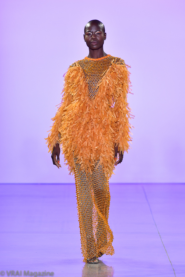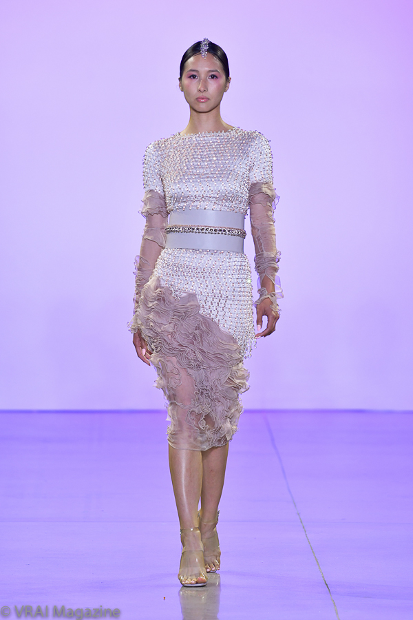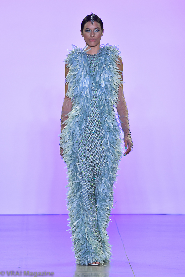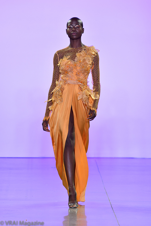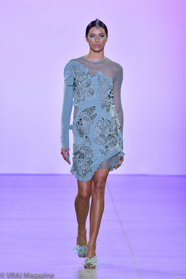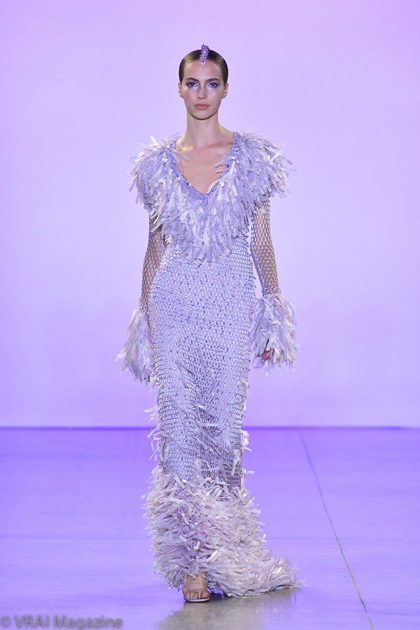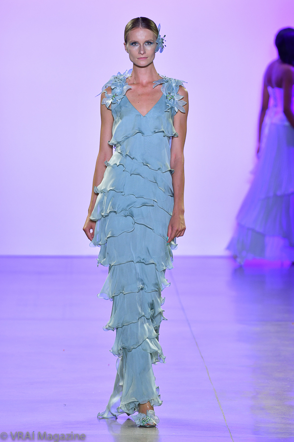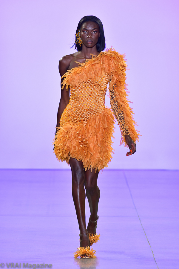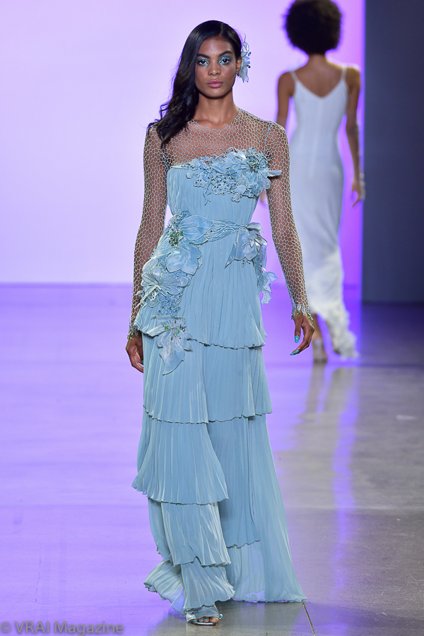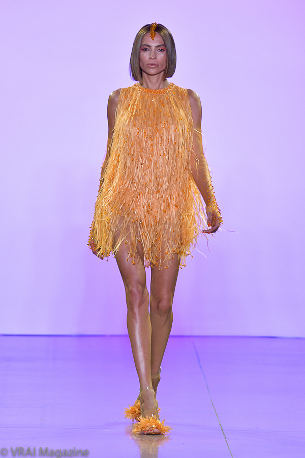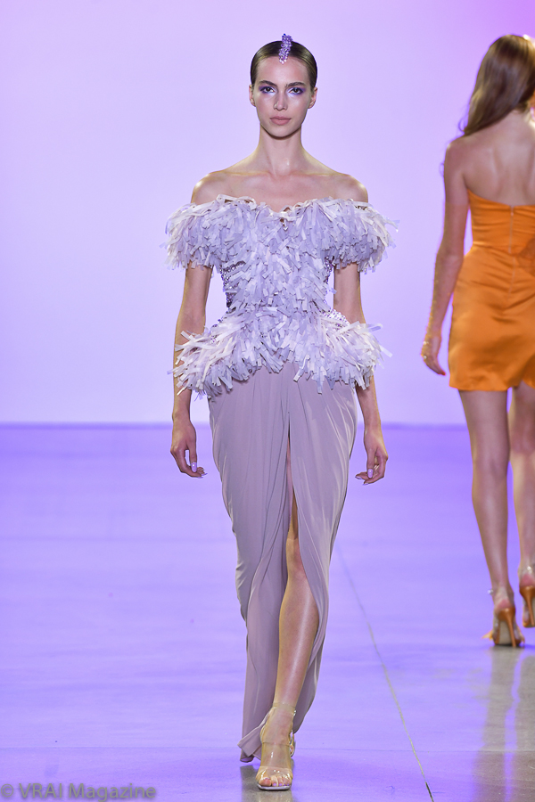 Photo credit: Alpine Baek (runway) and Jiayi Liang (backstage) for VRAI Magazine[/x_text][/x_column][x_column bg_color=”” type=”3/4″ style=”padding: 0px 0px 0px 0px; “][x_text]When I think of the Afffair brand, what comes to mind is seductive eveningwear and gowns. For Spring/Summer 2020 at New York Fashion Week, fun and flirty immediately came to mind as fringe dominated the collection. In tangerine orange, hues of blue and creams, full length evening gowns and cocktail length creations walked the runway to showcase a lighter touch for the season. Other design elements included mesh and strategically positioned floral-like appliques to accentuate the sexy silhouettes.[/x_text][x_tab_nav type=”two-up” float=”top”][x_tab_nav_item title=”Runway” active=”true”][x_tab_nav_item title=”Backstage” active=”false”][/x_tab_nav][x_tabs][x_tab active=”true”]