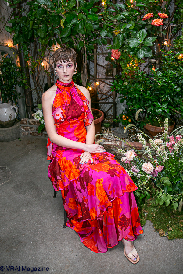 Photo credit: Jin Park for VRAI Magazine[/x_text][/x_column][x_column bg_color=”” type=”3/4″ style=”padding: 0px 0px 0px 0px; “][x_text]Set amidst a lush, floral backdrop, I had the chance to explore the brand flor et.al, created by the trio of Karin Gardkvist, Nadia Manjarrez and Milad Khoreibani. An 18-piece, art-inspired collection was presented at Palma restaurant during New York Fashion Week. Vibrant colors, along with ruffled and pleated details filled the latest collection from a brand which offers women a new option for fun, feminine evening wear.
