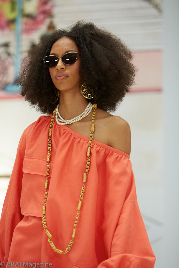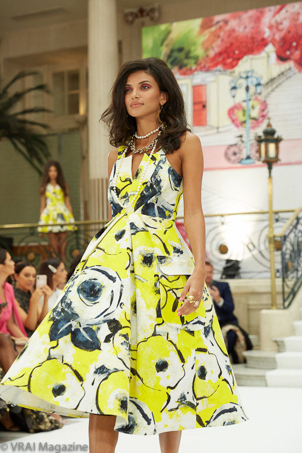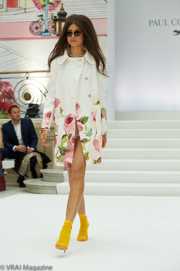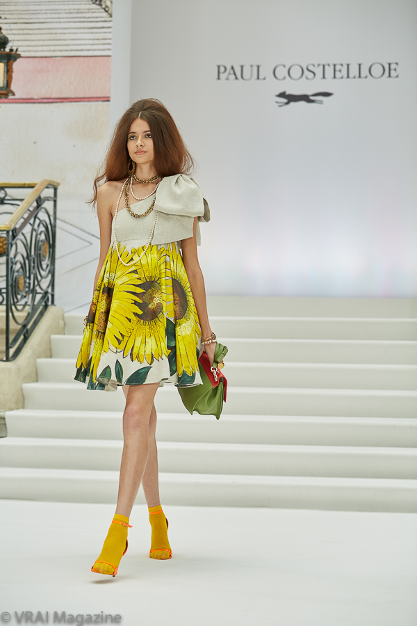 Photo credit: Annemarie Sterian for VRAI Magazine[/x_text][/x_column][x_column bg_color=”” type=”3/4″ style=”padding: 0px 0px 0px 0px; “][x_text]Always a favorite during London Fashion Week, it was a throwback to the 60’s at the Paul Costelloe Spring/Summer 2020 event. Big hair, a lighter color palette with bold floral prints, layered jewelry accessories, and the ankle stockings paired with contrasting vivid heels—all came together to complete the retro vibe which oozed onto the runway. It was a fresh take on an era gone by from the master of sophisticated, yet flirty femininity.
