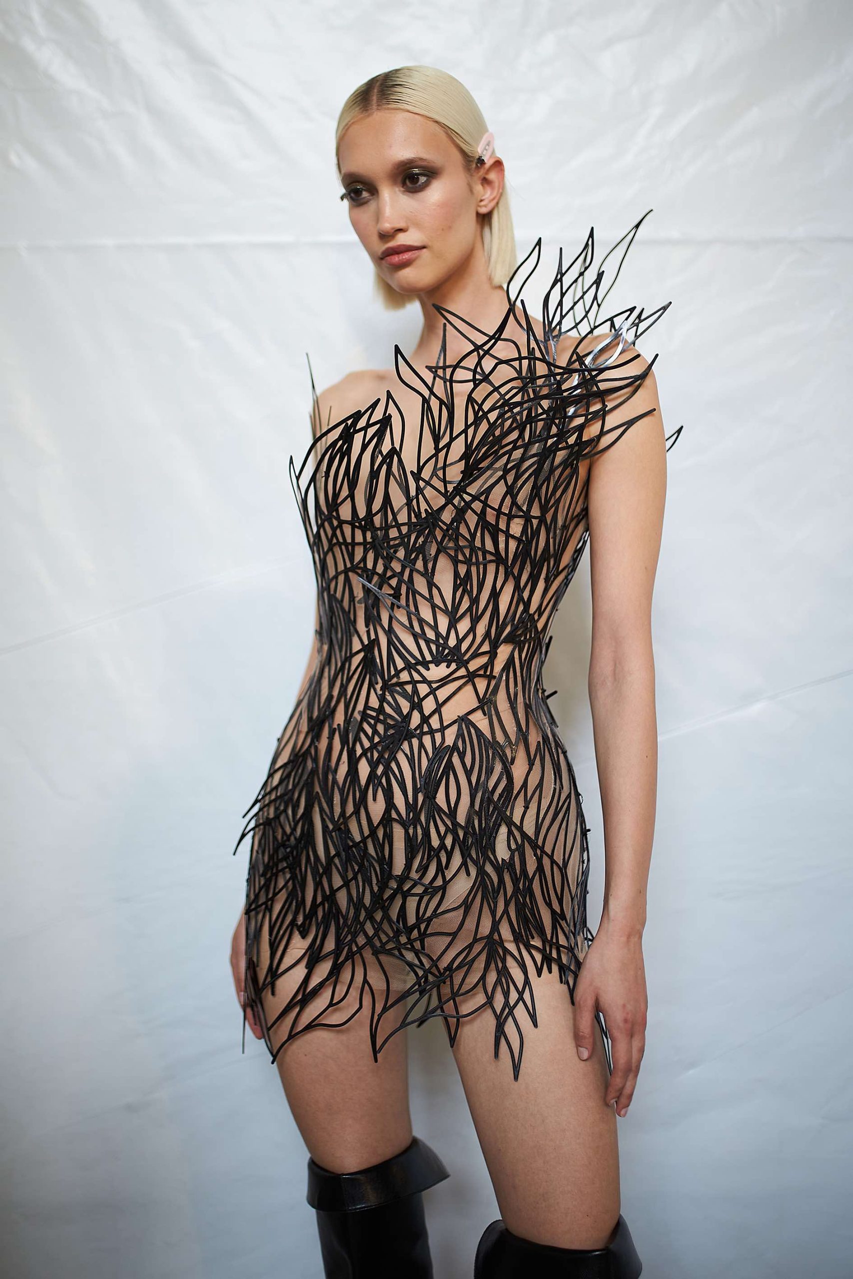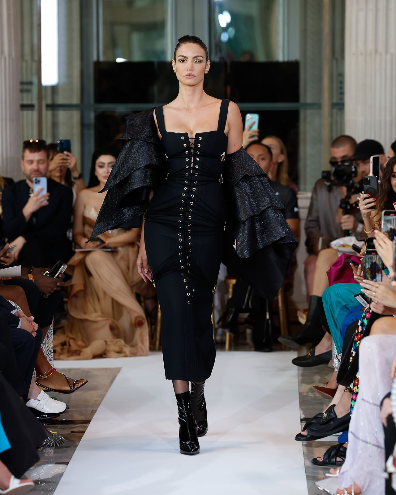 Looking beyond the beauty of the latest collection, it is important to note the sustainability aspect in its creation, including the upcycling of couture pieces to give them new life. The fashion house has also partnered with high-tech architect & digital fabricator Batoul-Al-Rachdan (B.OR.) in the creation of a “not-so-little” black dress made of 3D biodegradable plant-based material.